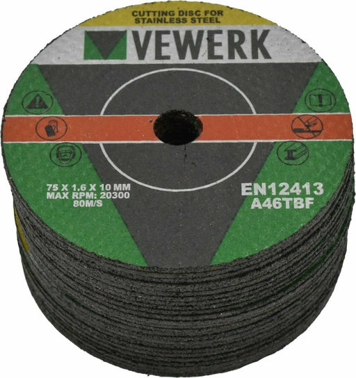 Vewerk75 x 1.6 x 10mmMetal Cutting DiscsMax RPM 20,300