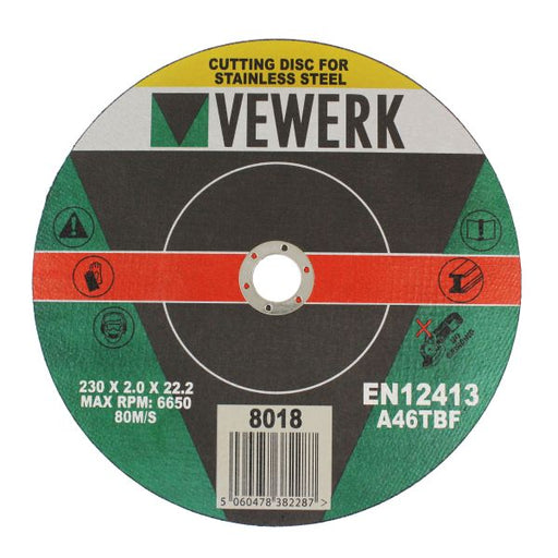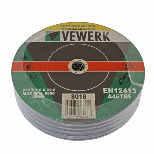 Vewerk230 X 2.0 X 22mmPack of 25Max RPM: 6,60080 m/sFor stainless steel and other metals.