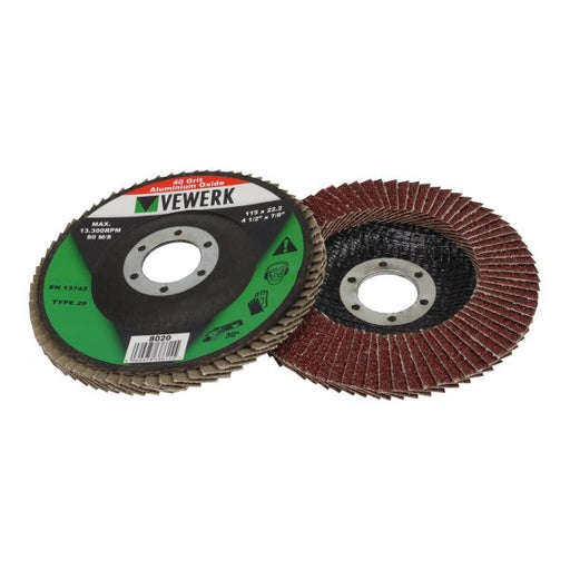 VewerkType 29 Flap Disc Aluminium Oxide 40 Grit 72 Flaps 115 x 22.2mm (4 1/2" x 7/8") Max: 13,300RPM 80 m/s EN 13743