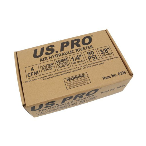 US PROThis air riveter is supplied with 4 nose pieces to accept 3.2, 4.0, 4.8 and 6.4mm blind aluminium and steel rivets. The hydraulic action generates ...