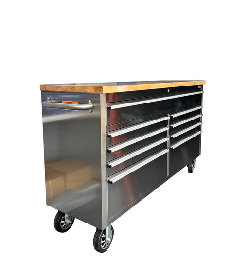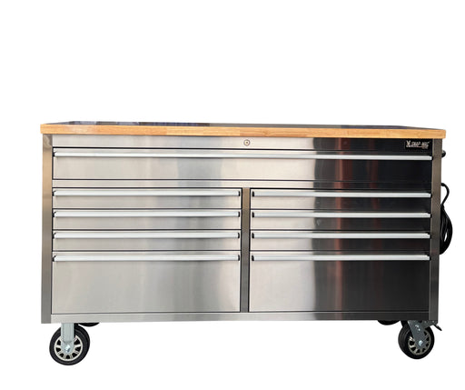 61” Stainless Steel 9 Drawer Work Bench Tool Chest Cabinet + 5M Extension Lead