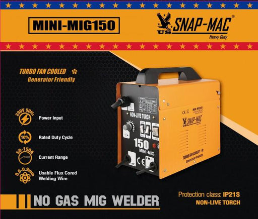 US SNAP MAC150 AMP Mig Welder ( No Gas ) •Brand New Sealed In Box •Single-phase, portable, fan-cooling wire welding machine for flux(no gas) welding. •Wit...