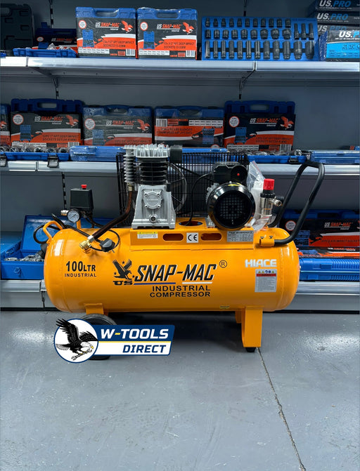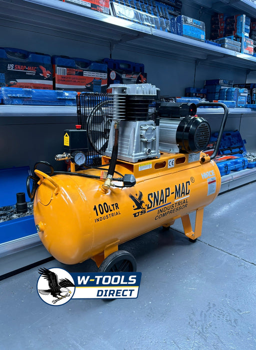 US SNAP MAC⬛️80mm Pistons🟨 Tank Capacity: 100Litre ⬛️ Motor: 4HP🟨 14 CFM⬛️ 398L / MIN🟨 Pressure: 8BAR / 115PSI ⬛️ Voltage: 220v 🟨 Single phase ⬛️ British plug...