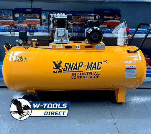 US SNAP MAC⬛️ 80mm Piston 🟨 Tank Capacity: 300Litre ⬛️ Motor: 4HP🟨 14 CFM⬛️ 398L / MIN🟨 Pressure: 8BAR / 115PSI ⬛️ Voltage: 220v 🟨 Single phase ⬛️ British pl...