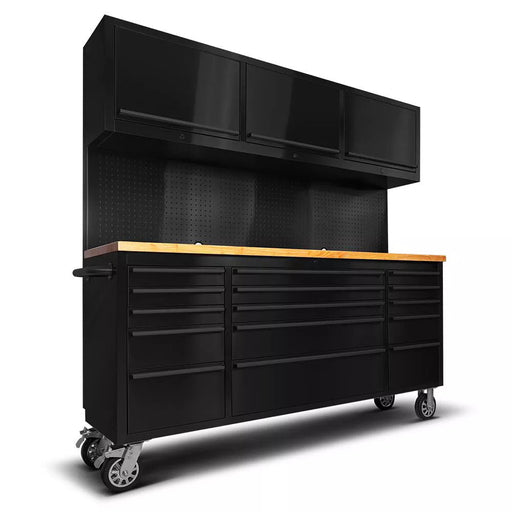 View full details72in Matt Black 15 Drawer Work Bench with Upper Cabinets