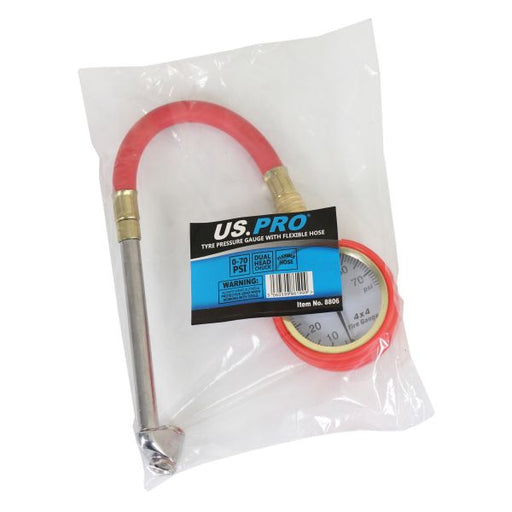 US PRODial marked for both Psi and Bar Range: 0 - 70 Psi / 0-4.8 Bar Dual Head Chuck Metal Body with protective rubber casing Flexible hose for easier...