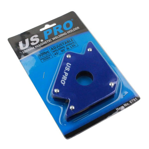 US PROThe strong magnet in this multi angled welding holder will hold up to 50lbs (22.6Kgs approx). Will hold work at: 45, 90 & 135 degrees