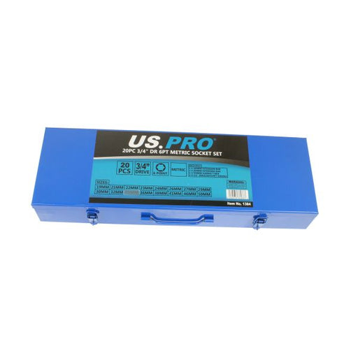 US PROContains: 3/4" Drive 6 Point Metric Sockets - 19, 21, 22, 23, 24, 26, 27, 29, 30, 32, 35, 36, 38, 41, 46 and 50mm 1 x 100mm Extension Bar 1 x 200m...