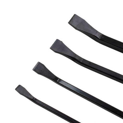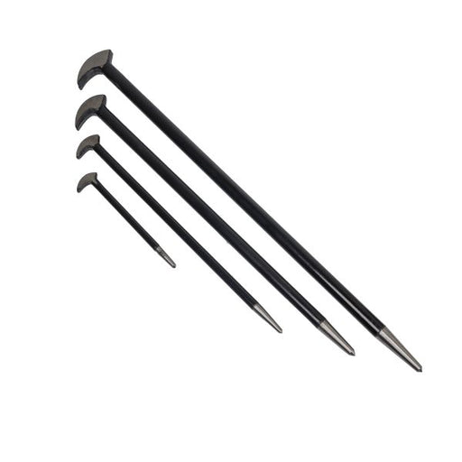 US PROSet of 4 heavy duty pry bars. • Heat treated for added strength Sizes: 200mm (8") x 6mm 300mm (12") x 9mm 450mm (18") x 10mm 600mm (24") x 10mm